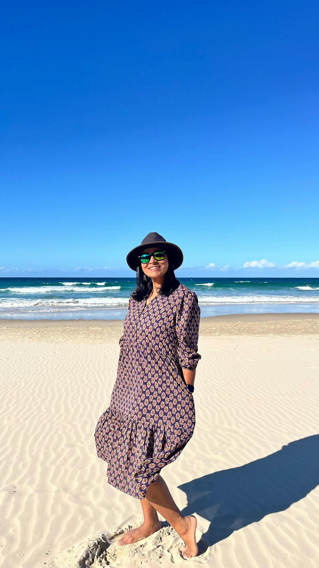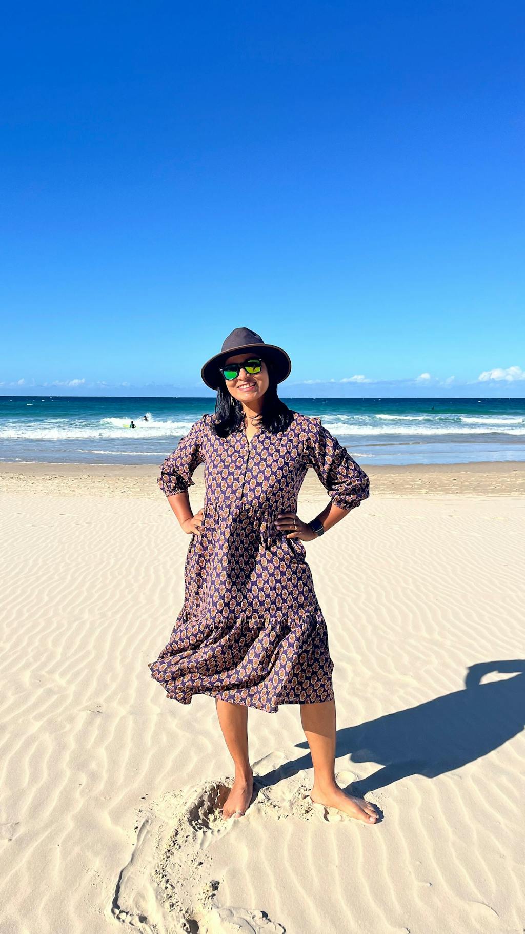 This gorgeous red floral midi dress is made from 100% cotton for a breathable, all-day comfortable fit. Featuring the Mayur print, an earthy floral design set against a rich red background to create a graceful, grounded look that's perfect for both everyday wear and special outings. Boasting a flattering tiered design and 3/4 sleeves. This dress also features a buttoned bodice with a mandarin collar, and convenient, hidden side pockets. Looks equally gorgeous loose or belted for a defined waist. This dress makes a statement by itself, great for sun protection in the warmer months, layer with leggings, boots and a jacket for a stylish winter look.