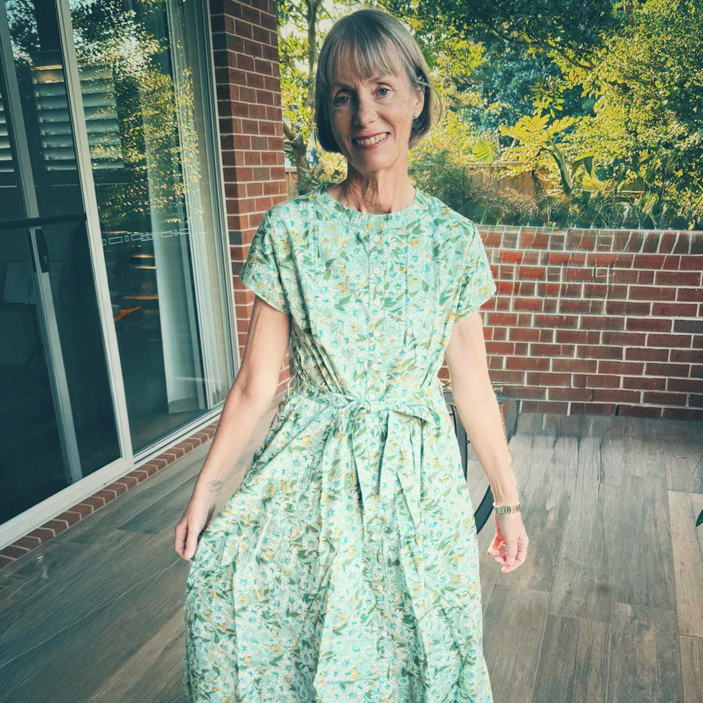 Our best selling Vivien Dress is an elegant 50s-style design, now available in the striking Sahira print, featuring graceful floral contrasts on a bold dark base. A gorgeous piece throughout the day and into the night. This 100% cotton, button through dress features a high round neckline which can be tucked in to form a V-neck, hidden side pockets, and pleats at the waist in the centre, front and back panel adding some stunning detail to the dress. Wear it loose, or cinch the waist with the detachable waist tie, or try a belt. Paired perfectly with sandals or dress the look up with heels and some jewellery.
