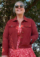 Our cotton corduroy jackets are back, and now with new and improved brass buttons, with enhanced durability, for ease of use. This one is in a warming terracotta colour. You can use the buttons to fasten the front closed or wear it open. Brass buttons also secure the cuffs, breast pockets and adjustable tabs at the back. These long sleeve jackets are made from soft cotton standard wale corduroy, that will help keep you warm. Great for layering, these jackets complete a work or play outfit. Mix and match these jackets with our corduroy skirt collection, to create a whole look.