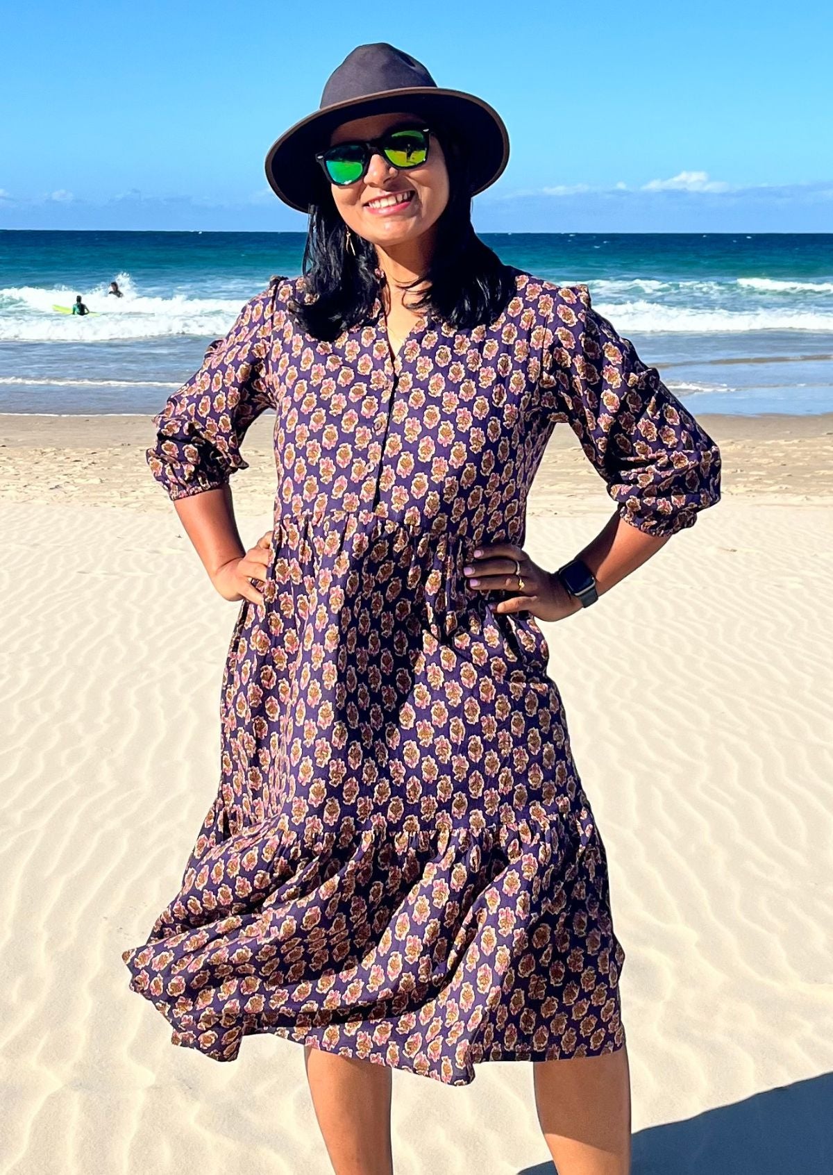 At Karma East we have five different types of fabric in our Long Sleeve Dress Collection. Thick cotton that is used in our more structured pieces and doesn’t require lining. A lighter weight cotton which often features our traditional Indian block print and floral designs, these are often lined to ensure they are not see through. Cotton Corduroy that is non stretch. Double Cotton, made from two lightweight layers of gauze that are basted together. And soft, stretch rayon in block colours, that form our Basics range. They are a great throw-on dress, comfortable to wear around the house, or dress up and head out and about.