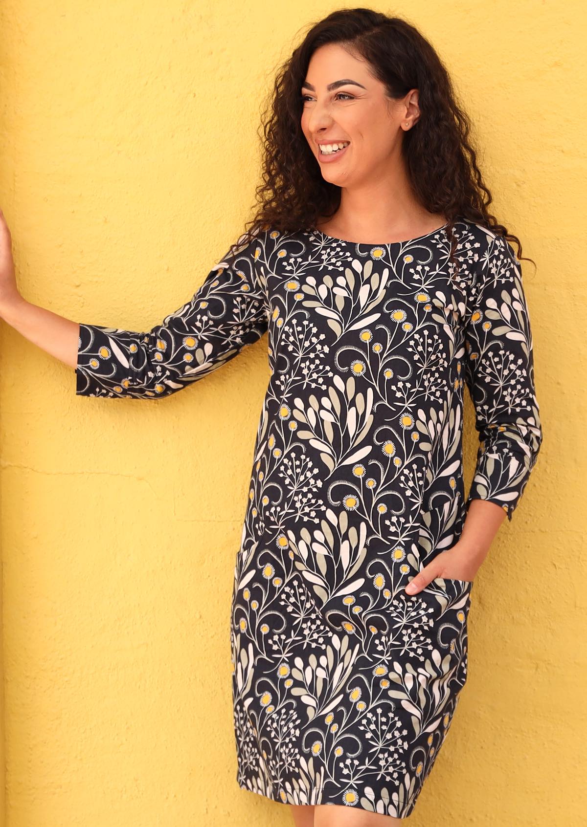 The ever popular Jamie Dress is a must have when the season transitions. Made from 100% cotton, with a slight a-line skirt and stylish detail on the cuffs, this dress includes the most important feature, pockets! In the cooler months try a Jamie Corduroy Dress, cut from the same pattern but in our non-stretch cotton corduroy, in a mid-wale.