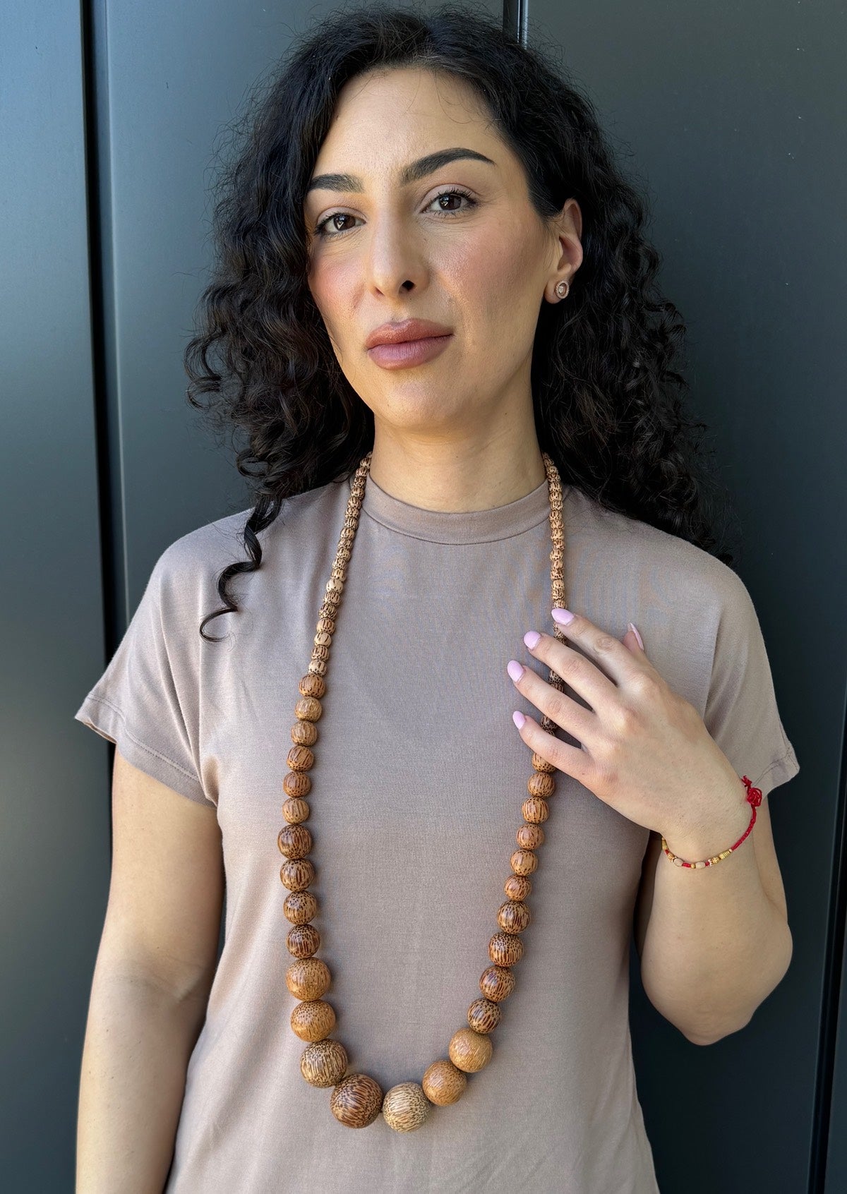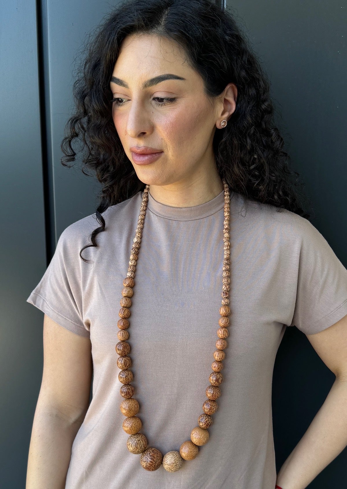 Each bead is handcrafted from natural, renewable Pangantuon wood.