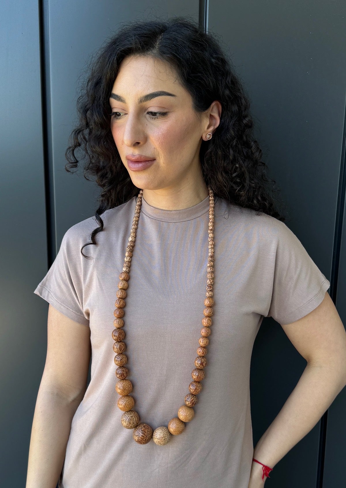 These gorgeous fair trade necklaces are made from hand sculpted wooden beads.