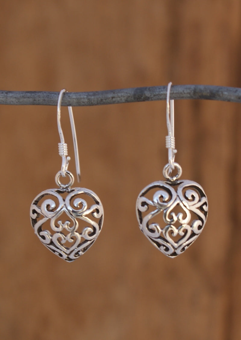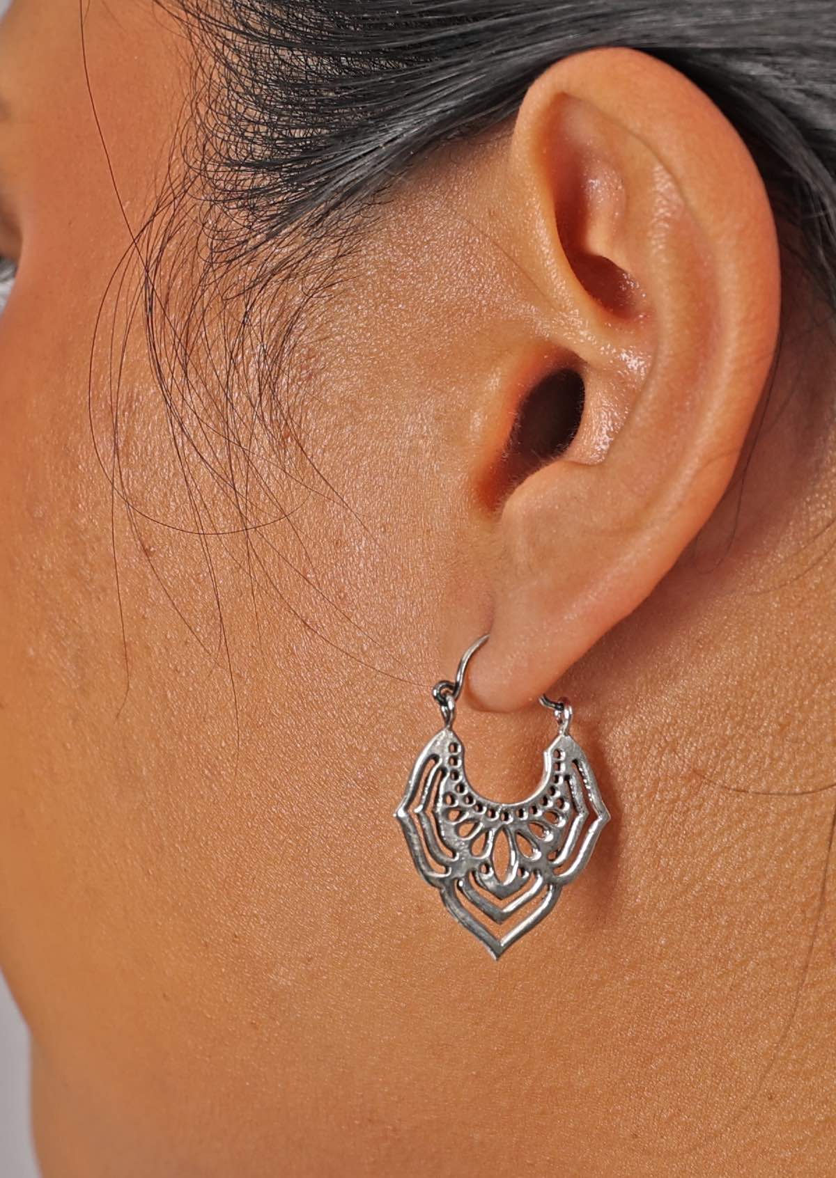 A beautiful range of sterling silver earrings can be found at Karma East. We have curated a range of 92.5 silver earrings that would appeal to every woman. In it you will find sophisticated simple drops perfect for work, ornate bohemian styles, floral designs,  Thai Hill Tribe inspired earrings, Moon Earrings, Gypsy Style Earrings, Lotus Earrings, Dangly Earrings, Hoop Earrings and much more.