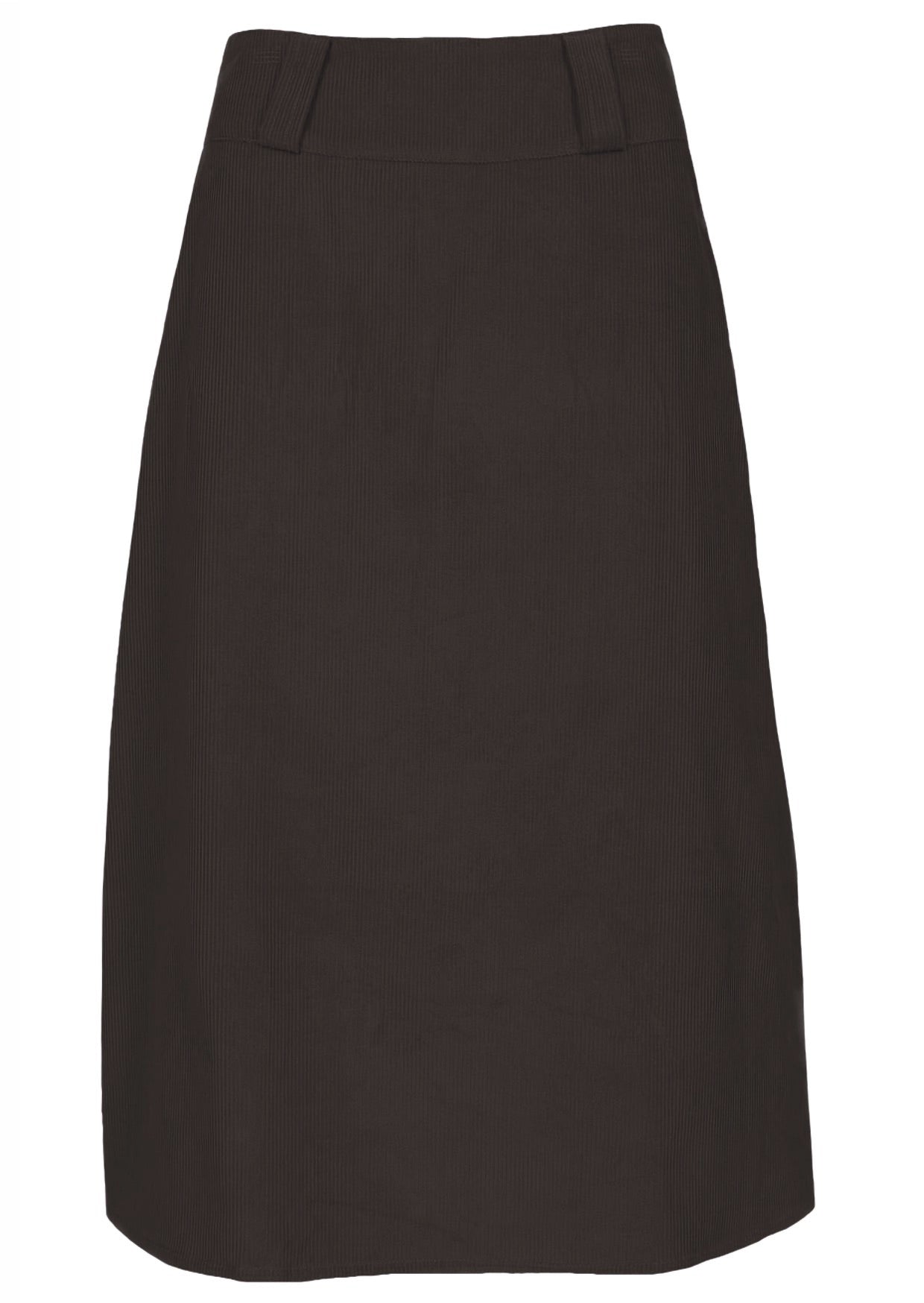 Grab yourself a wardrobe staple in the Belt Loop Skirt, in lush 100% cotton, standard wale corduroy. Featured in dark, neutral chocolate brown. This A-line skirt sits on the shin and features a wide waistband yoke with belt loops, back pockets, and a side zip. Team with boots and tucked in top for a fun look. Can be worn lower to the hips, or up on waist, check measurements to help decide the fit for you. Mix and match with one of our Corduroy Jackets, to create a whole look.