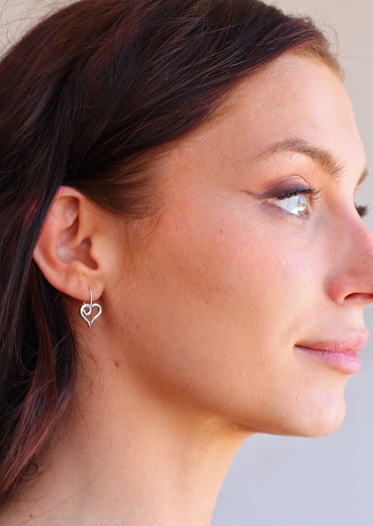 Fall in love with our Hearts Silver Hook Earrings. Made of sterling silver, these quirky, cute hooks feature darling heart shapes, adding a touch of sweetness to any outfit. Approximately 16mm in length including the hook, and 10mm wide, with a fixed wire.
